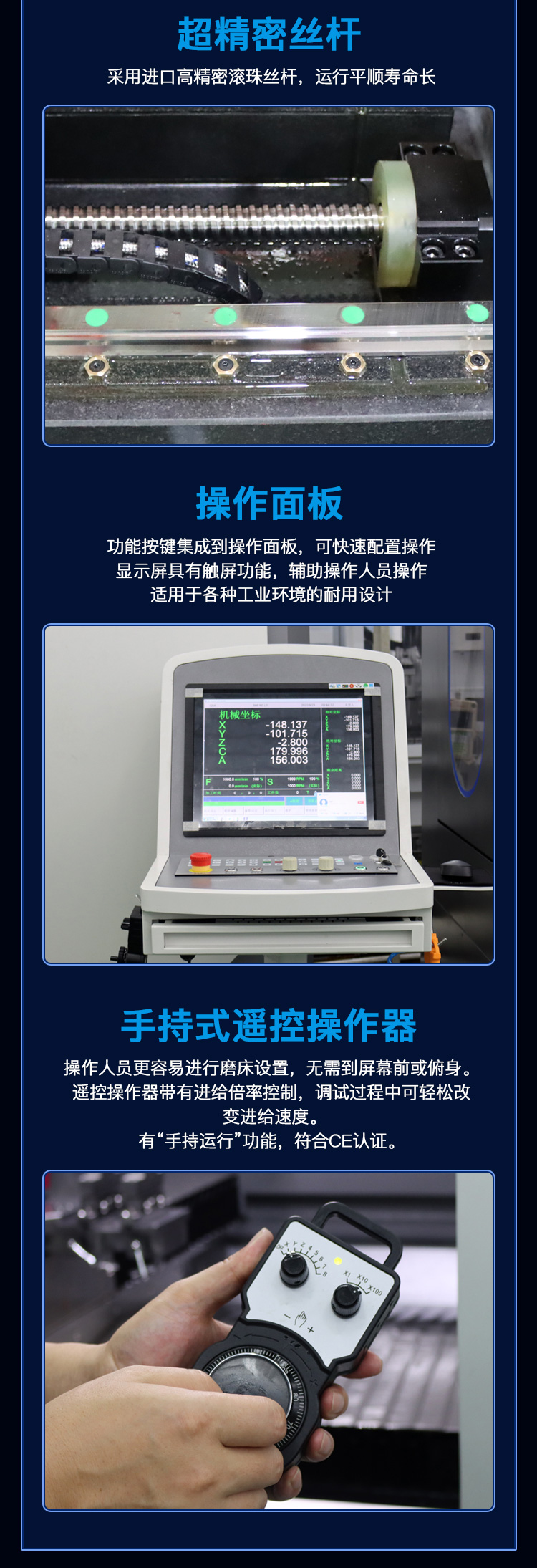 1.機(jī)床外觀大氣、靈動(dòng),人機(jī)界面友好,采用天然大理石構(gòu)件,機(jī)床穩(wěn)定性好。