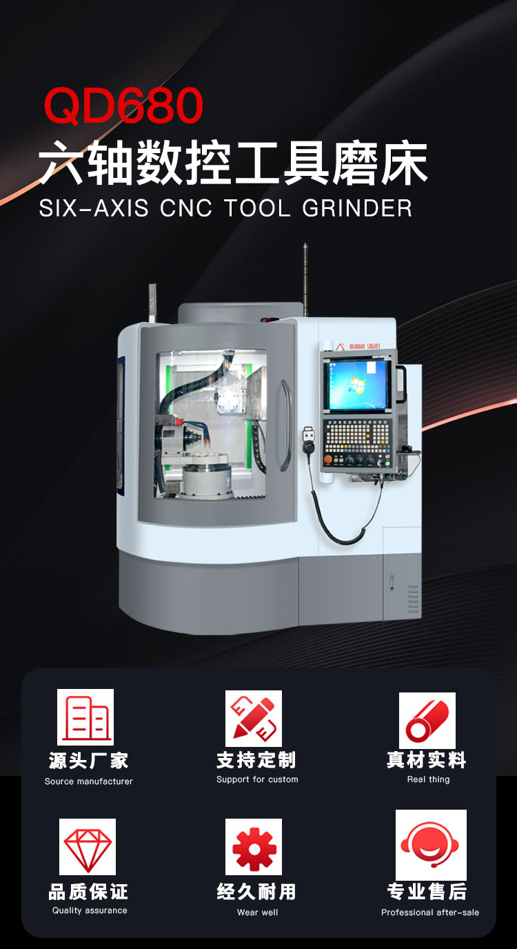 QD680六軸五聯動數控工具磨床,適用于生產或修磨小規格銑削類刀具、鉆削類刀具、成形刀具等