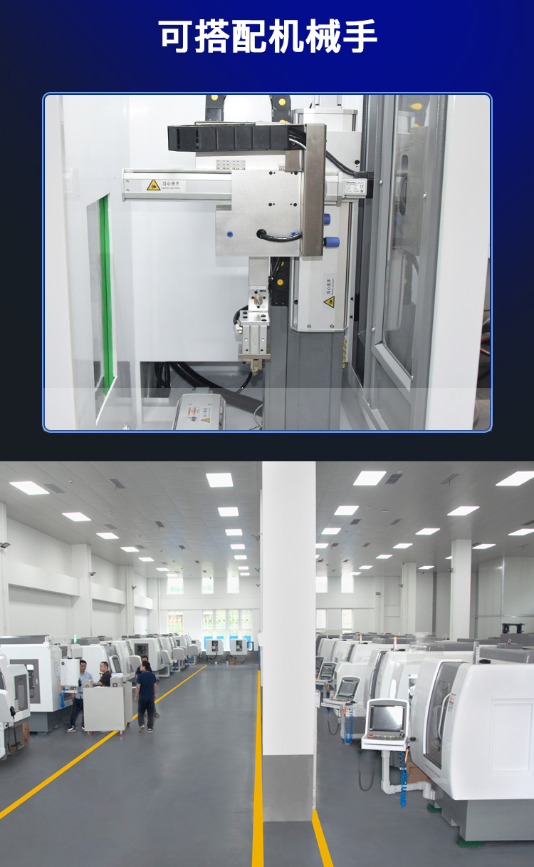 機床采用全封閉外觀(正面活動拉門、左側設有維修門)、吊臂式操控面板、手持電子手輪、專用啟停按鈕、配置自動油冷機及工件冷卻控制裝置、配置自動潤滑裝置及吸霧接口、報警蜂鳴器、配置電器箱冷卻空調,使機床的操作、保養、維護變動簡單方便。