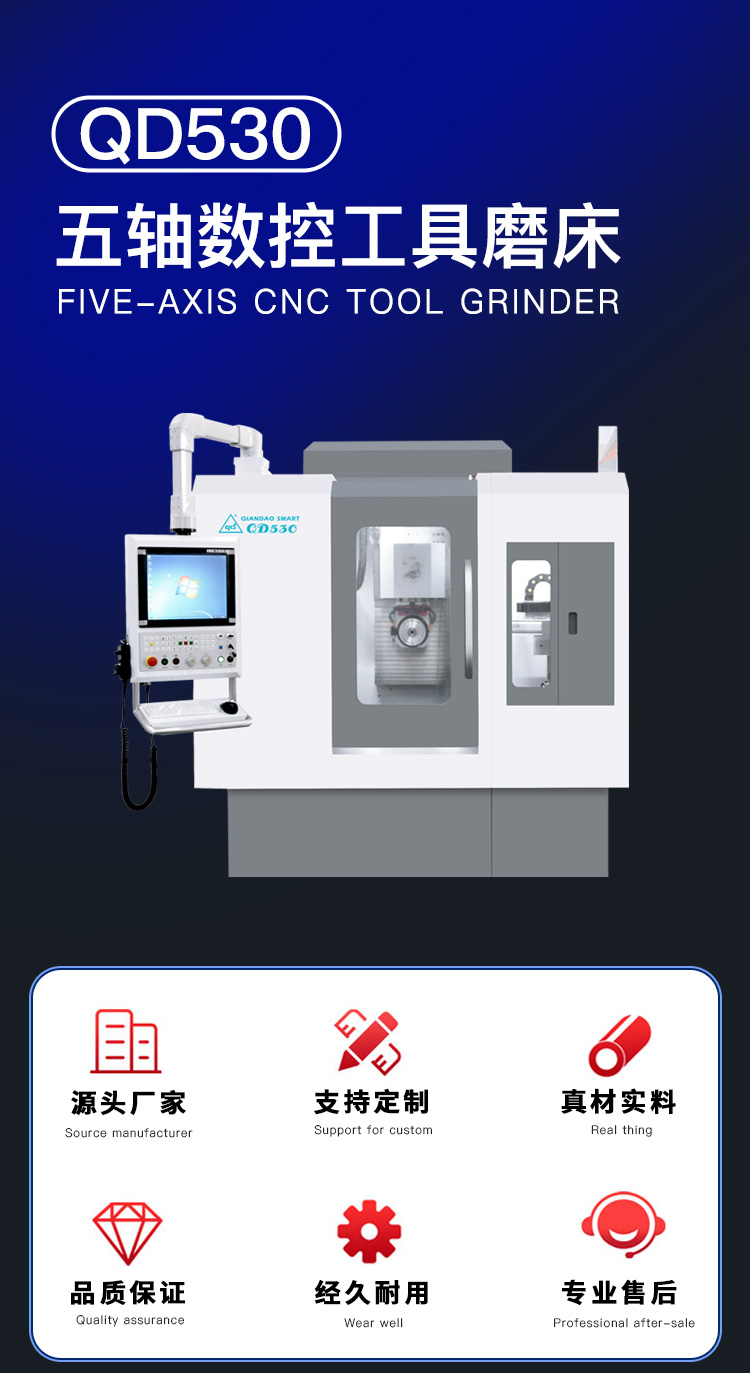 QD580是一款性能優良的刀具磨削中心,適用于生產或修磨銑削類刀具、鉆削類刀具、成形刀具等。